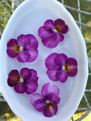 Class 15 - 5 pansy or voila heads floating or displayed in a bowl or vase